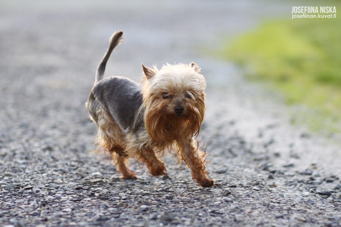 Tänään on virallisesti tehty puolet kesätöistä! Kaks viikkoa on mennyt aika huomaamatta, joinakin iltoina olen jättäny Amorin kotiin itikkamäärän tai hyytävän ilman vuoksi. Muutoin Amor on ollu mukana ja lähes poikkeuksetta irti, jotkut romuntuojat on erikseen pysähtyneet pyytämään koiraa luokseen ja rapsutelleet. Amor on ollu huippuhienosti pienten lastenkin kanssa, vieressä on päiväkoti ja sieltä aina joku säntäilee jonnekkin. Kylän mopopoikia Amor on viihdyttänyt tempuillaan ja istunut tärkeän näköisenä vuorotellen milloin kenenkin sylissä.